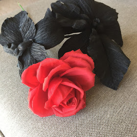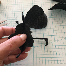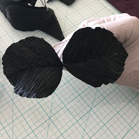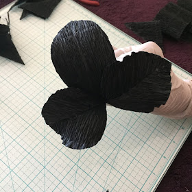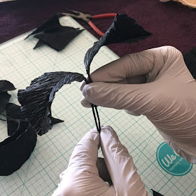 We are going to use 3 wires to make the Petals. Take 2 of the Petals and put dots of tacky glue on one side of the paper and place the wire in the middle of the Petal. Make sure that there is an approximate 3 inch stem. Next, place the second Petal on top of the original petal by sandwiching the wire in between the 2 Petals. Hold firmly and then shape them as demonstrated in the picture. Repeat this process with the other sets of Petals until you have 3 sets: