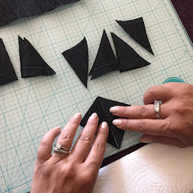 Lets make the Lip. Use your third triangle and instead of making a square, this time take your scissors and cut from bottom to the top part of the triangle shaping it like ridges:
