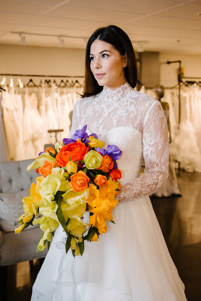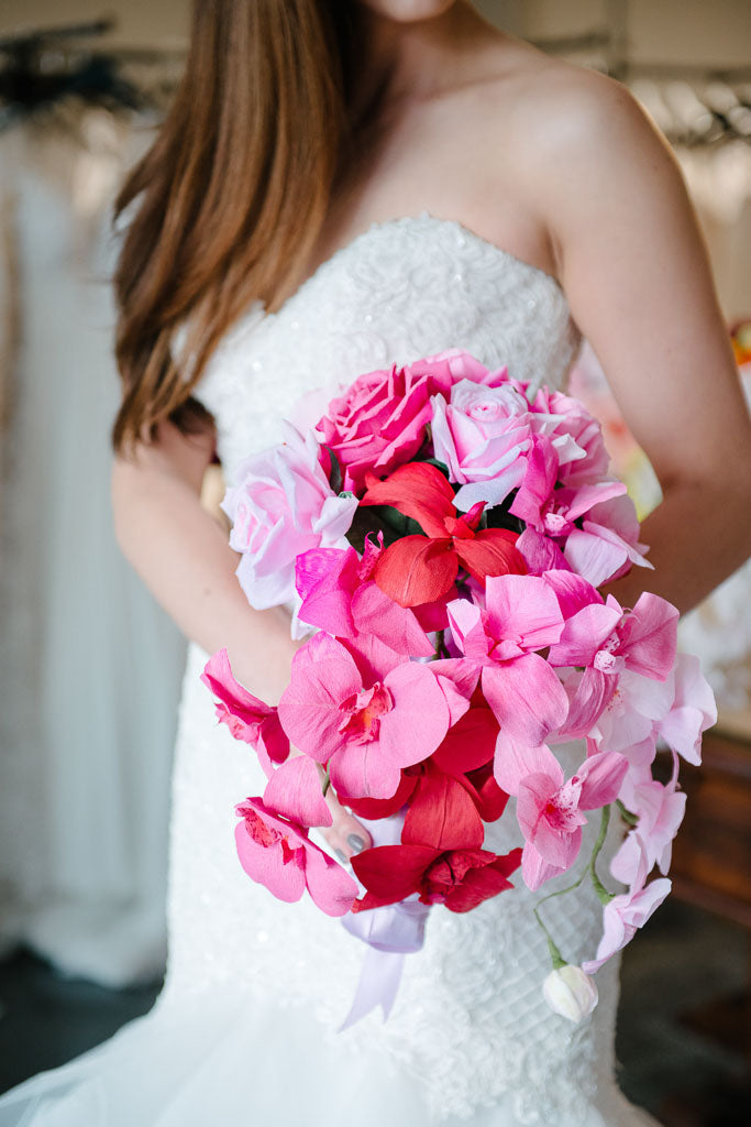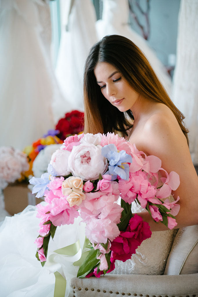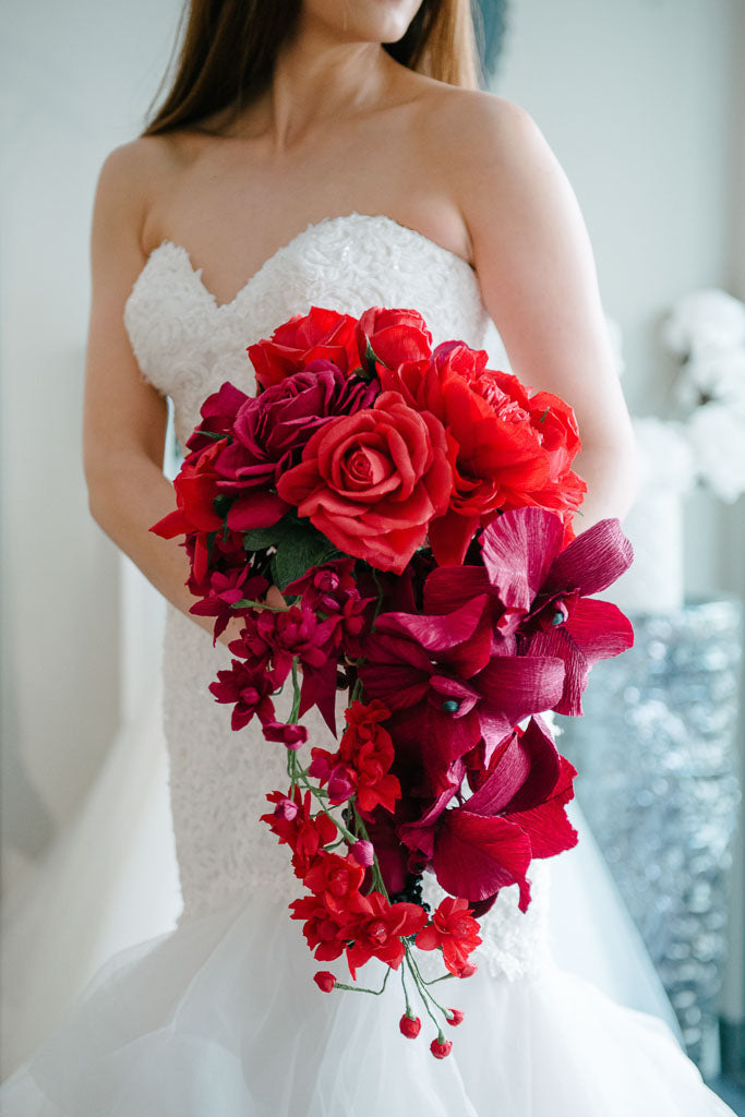 Today, many modern brides are opting to have their bridal arrangements custom designed and created for them in just this way for their own special day. Many other customers may have had a traditional floral bouquet for their wedding day then, later, wish to have it "recreated" in paper to serve as a cherished keepsake that will last for years to come.