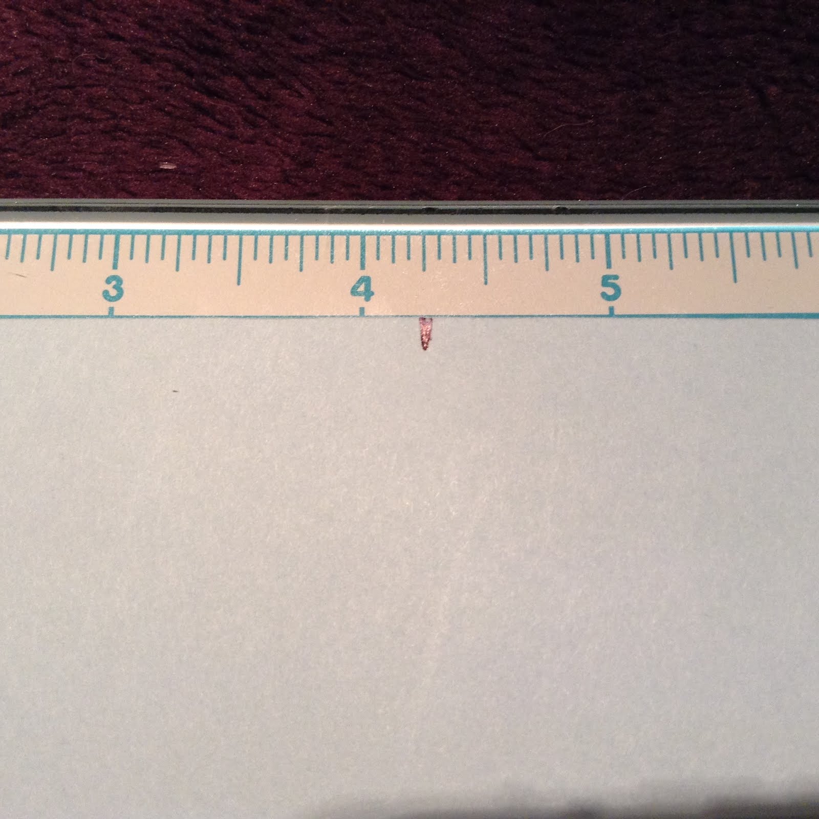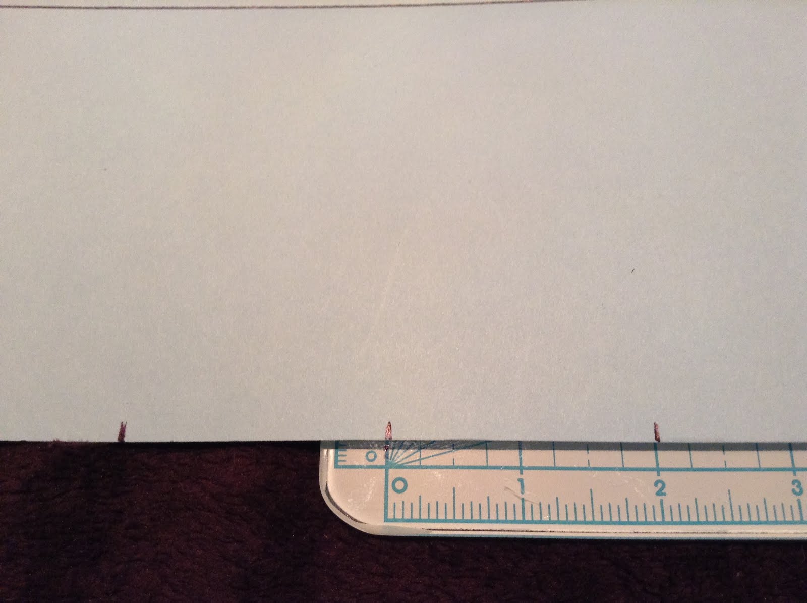 Next turn the paper around with the 4" measurement on the bottom toward you. Then measure 2" from each side of your previous marking so you end up with 4" in the middle:
