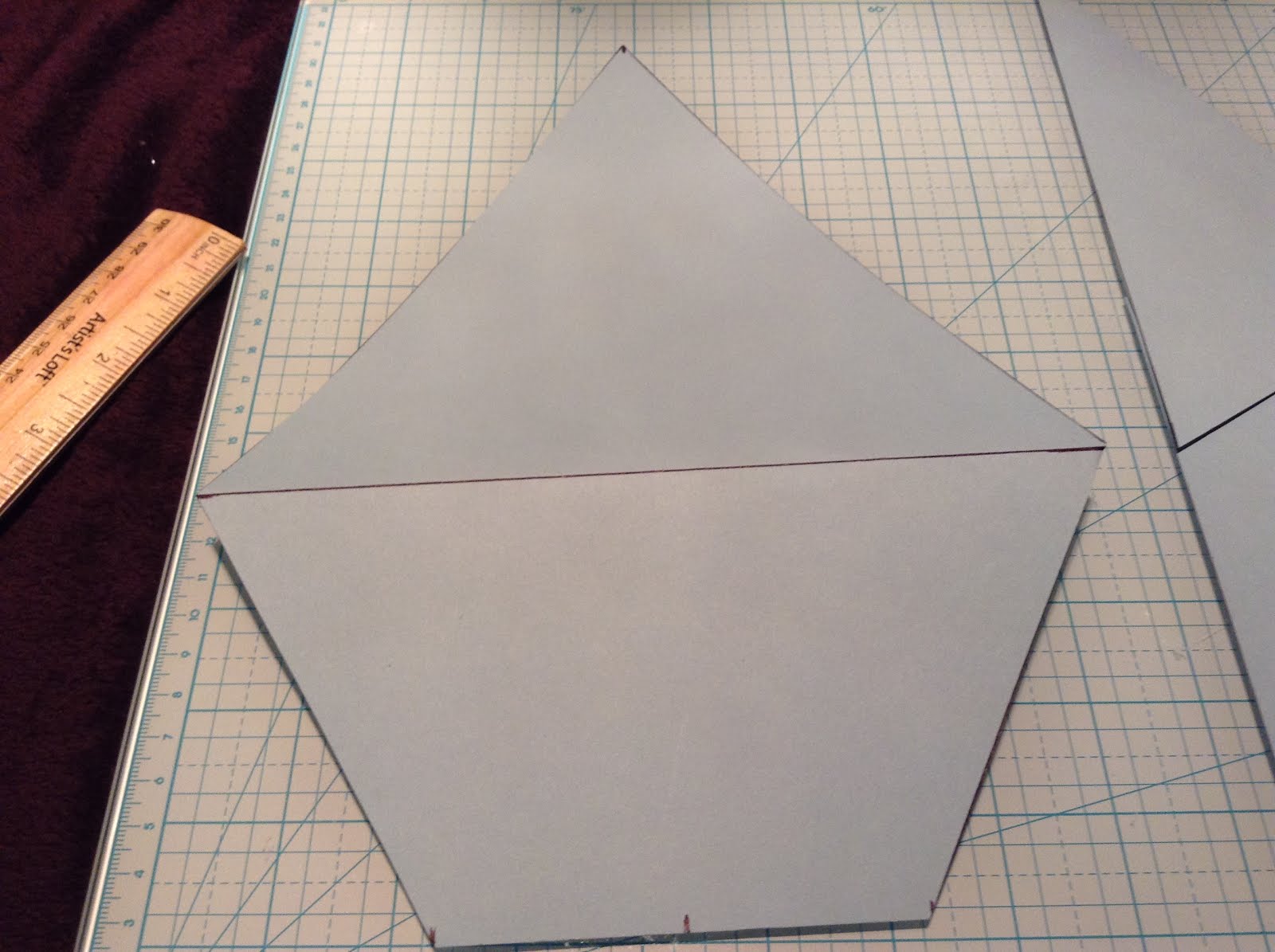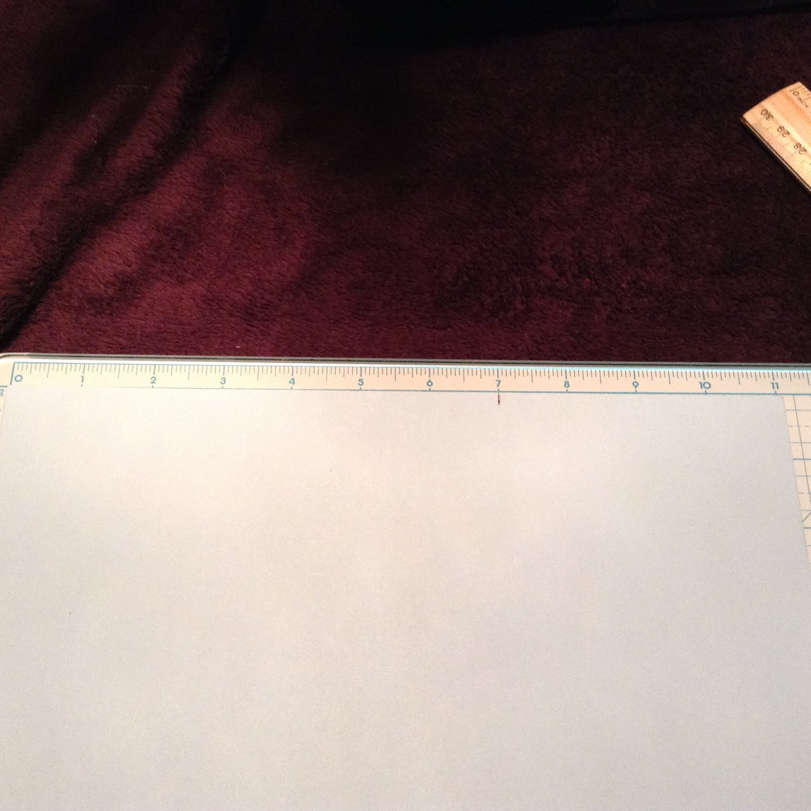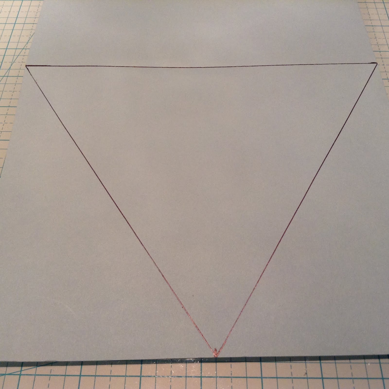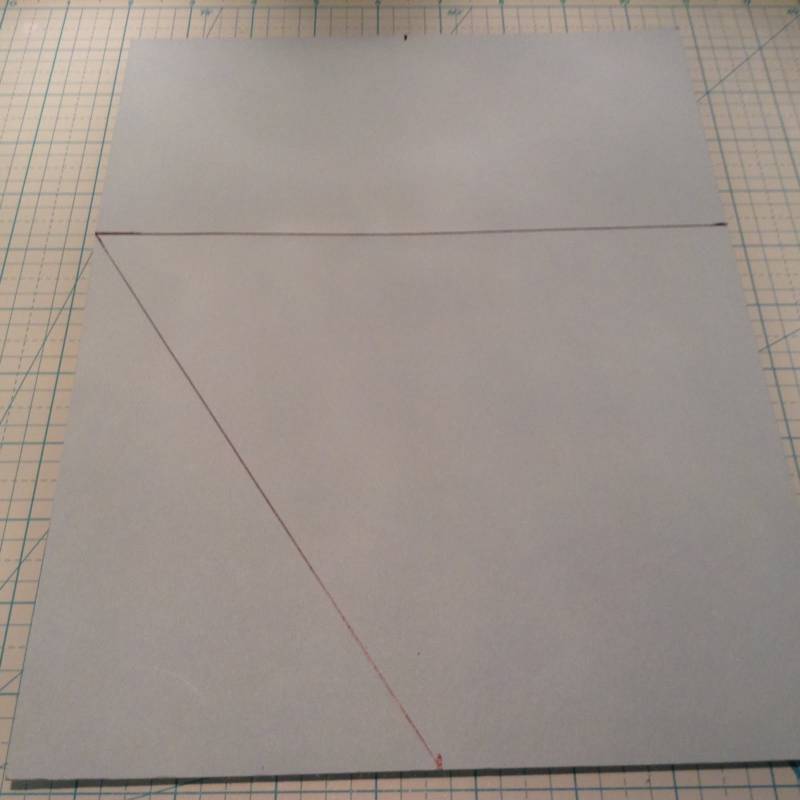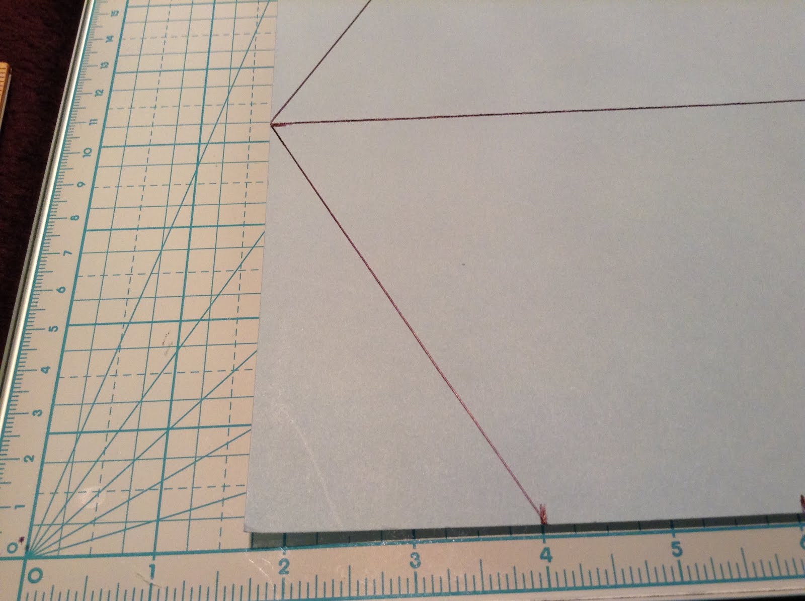 Now place the paper in front of you with the width going from left to right with the 7" measurement on the bottom. Then use your ruler to draw a line from the 7 inch measurements to the 4-1/4 inch measurement at the bottom of the page creating a triangular design: