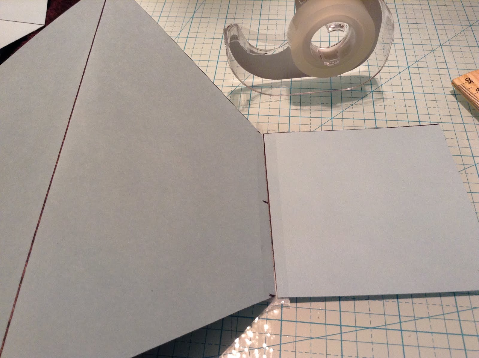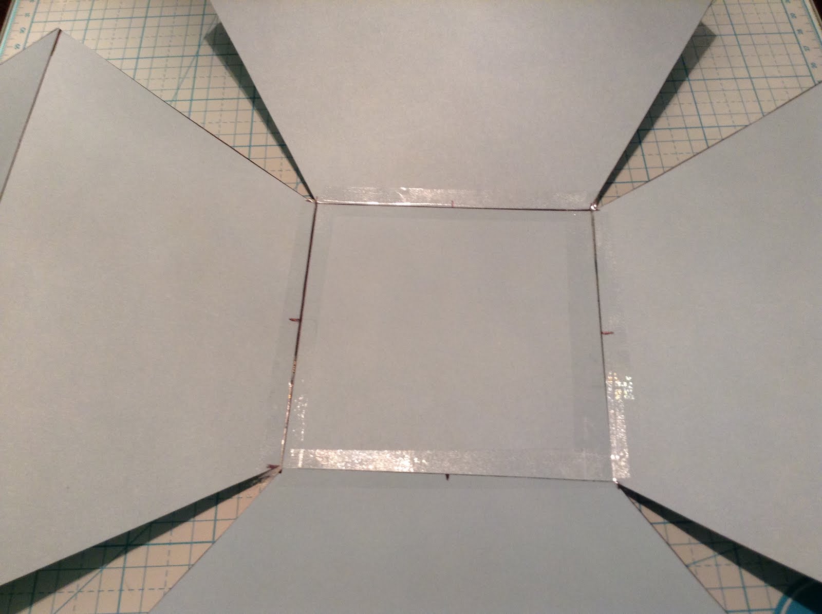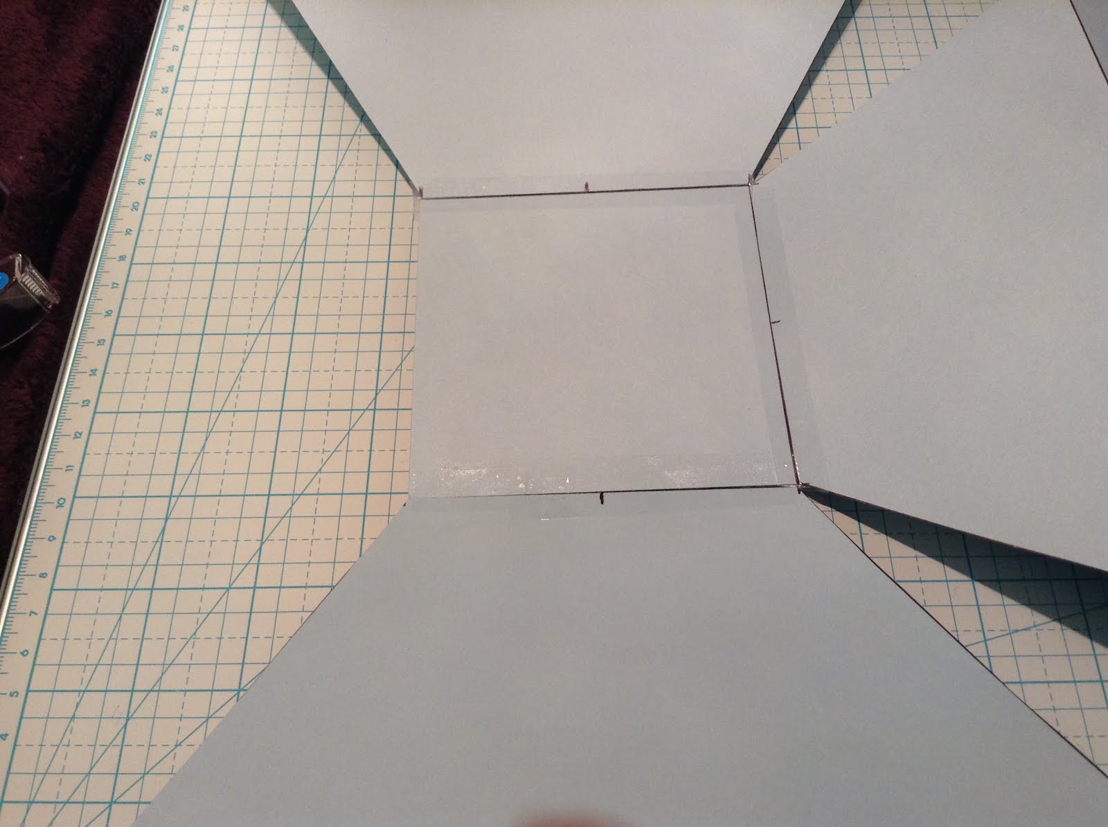 Then use the Scotch Tape to connect the 4" side of the diamonds to the 4" square as shown below: