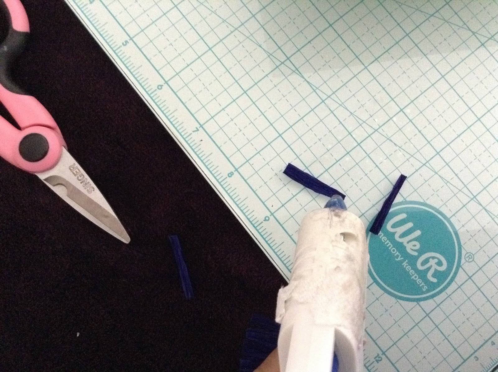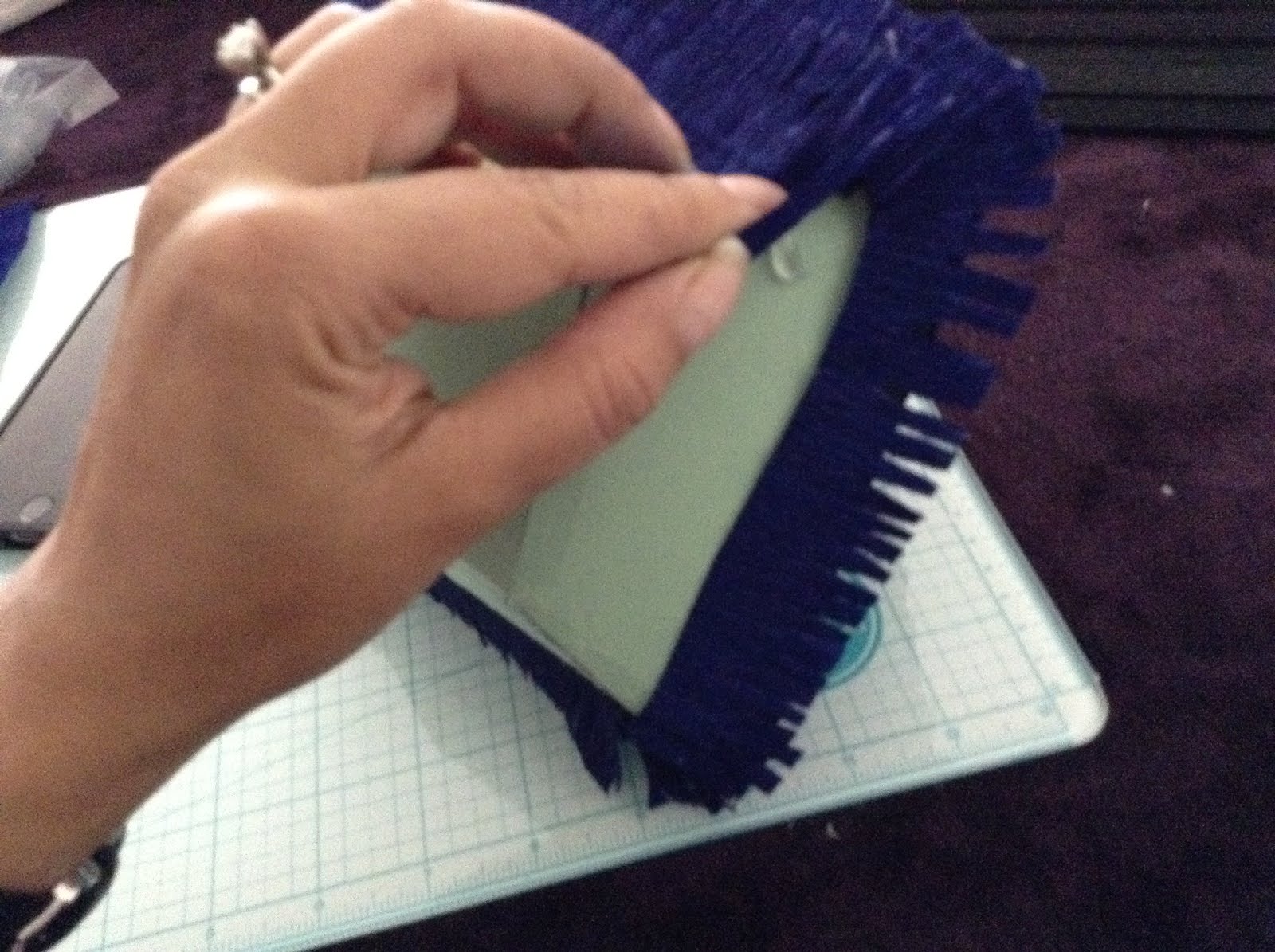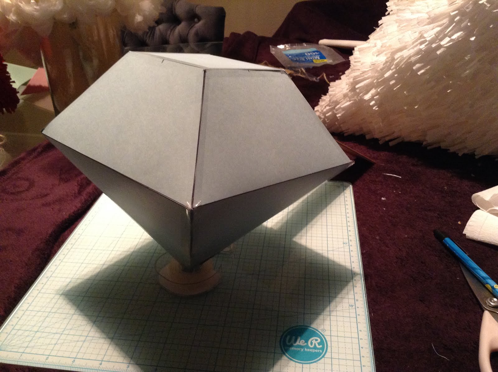 Then work your way around the same area by adding more strips overlapping the previous crepe paper that you glued to the bottom of the diamond shaped box: