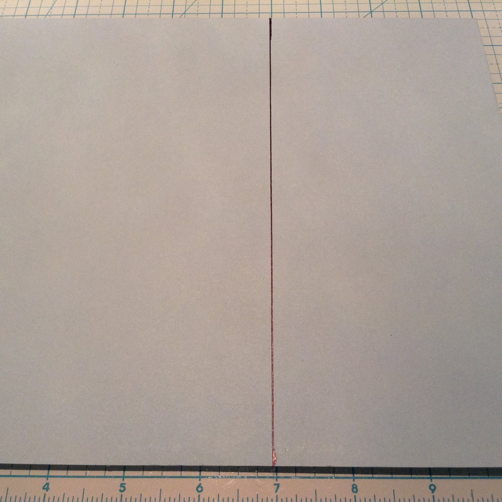 The width of your paper is 8-1/2 inches so using your ruler, you need to mark the half way point at 4-1/4 inches on both sides along the width of the paper: