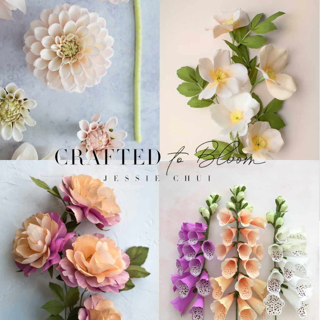 Jessie Chui of Crafted to Bloom has been a fixture in the paper floral world for years. In addition to creating works for her paper floral business, Jessie often holds workshop classes for students that come from all over the world to learn from her.